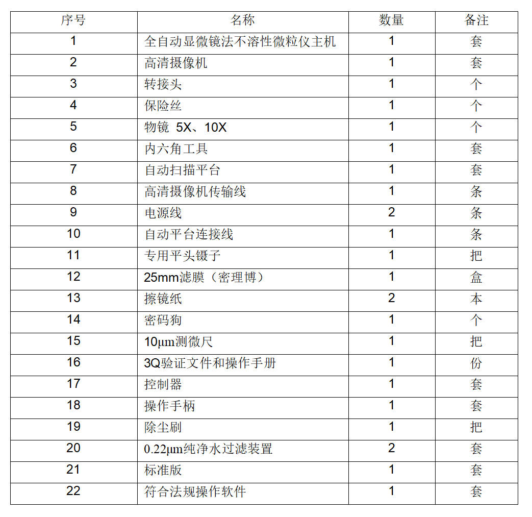 全自動顯微計數法不溶性微粒分析儀 配置清單