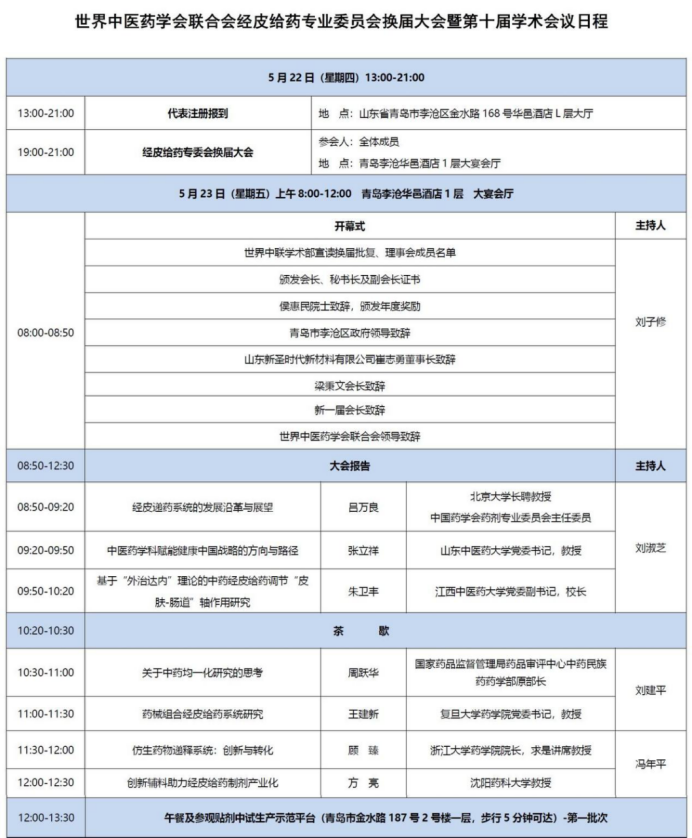 世界中醫(yī)藥學(xué)會(huì)聯(lián)合會(huì)經(jīng)皮給藥專(zhuān)委會(huì)換屆大會(huì)暨第十屆學(xué)術(shù)會(huì)議日程