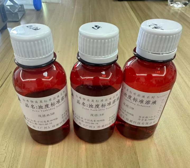 濁度標準液應臨用時制備,使用前充分搖勻。 現在市場上有濁度標準液的售賣,可以直接買。