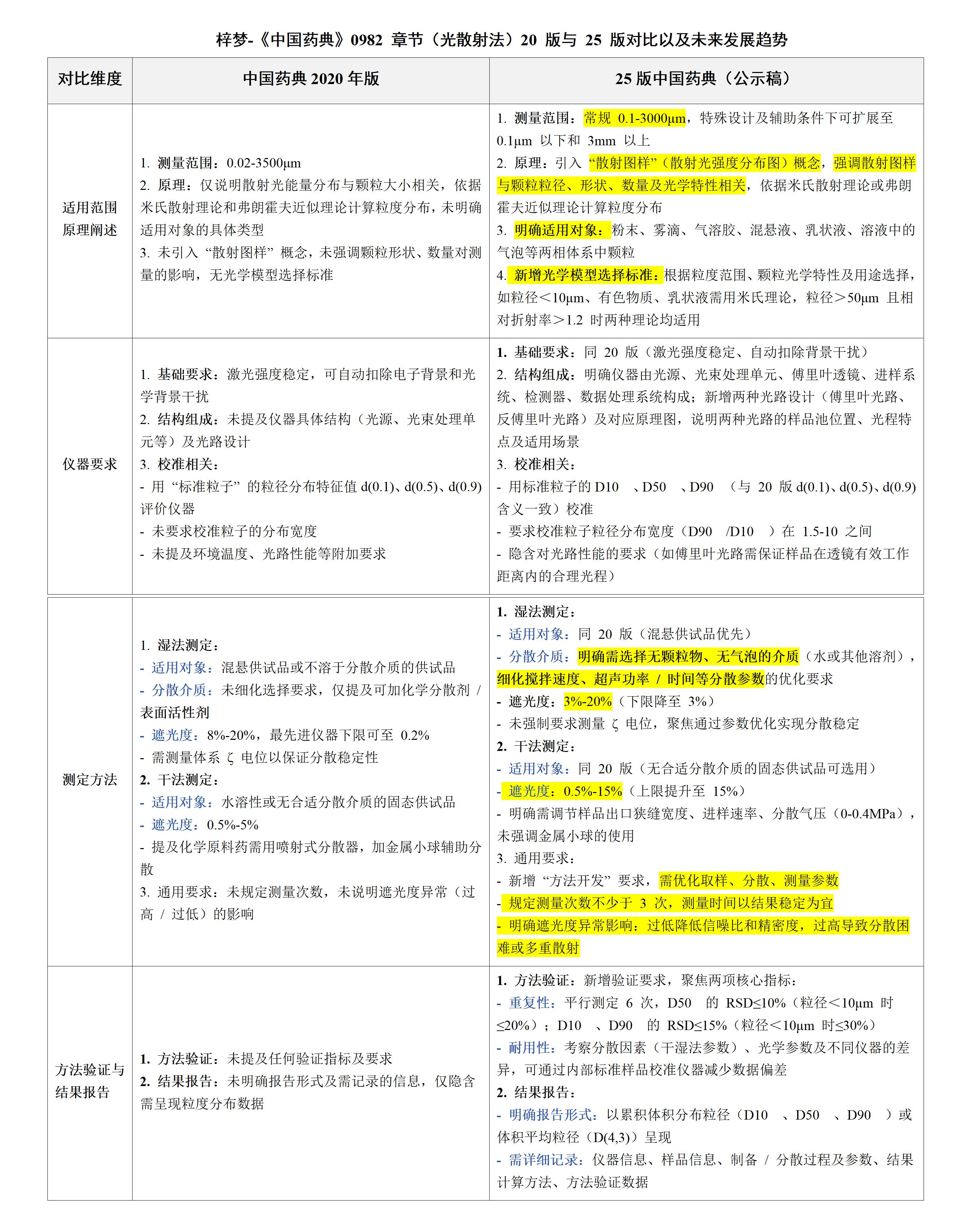 2.標準化與規(guī)范化加強:藥典對光散射法規(guī)定不斷細化完善,未來將緊跟國際標準和技術(shù)發(fā)展,提升方法的標準化和規(guī)范化程度,減少實驗室間差異。從 20 版到 25 版對適用范圍、儀器要求、測定方法等方面的修訂可看出這一趨勢 。